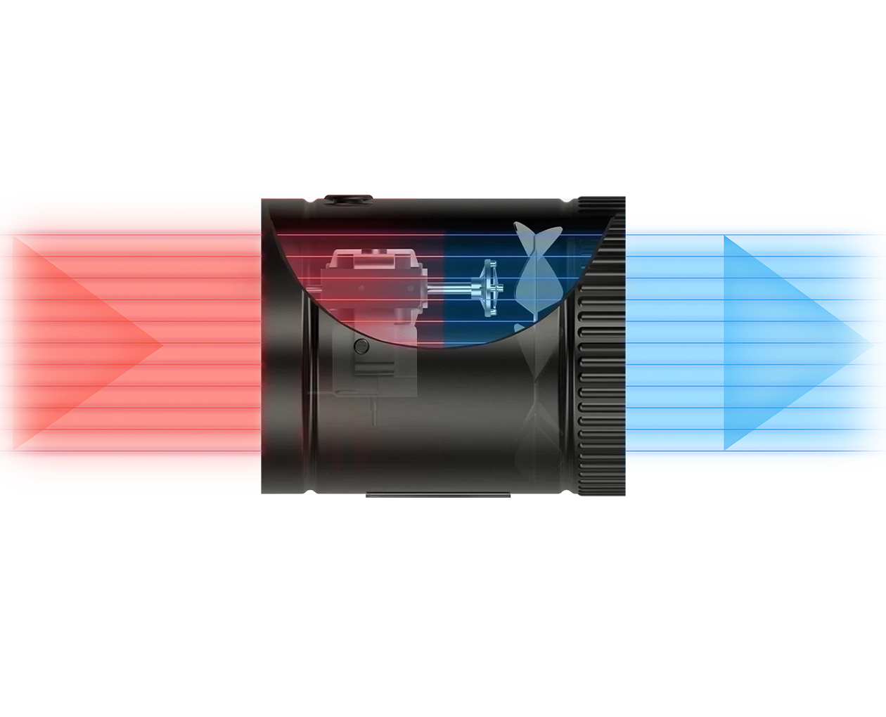 Features a variable speed controller that adjusts the fan speed in LOW/MID/HIGH thresholds to easily optimize airflow strength and noise level.